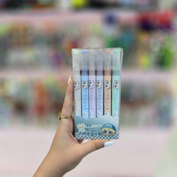 هایلایتر پاستلی دوطرفه پک 6 عددی طرح دختر